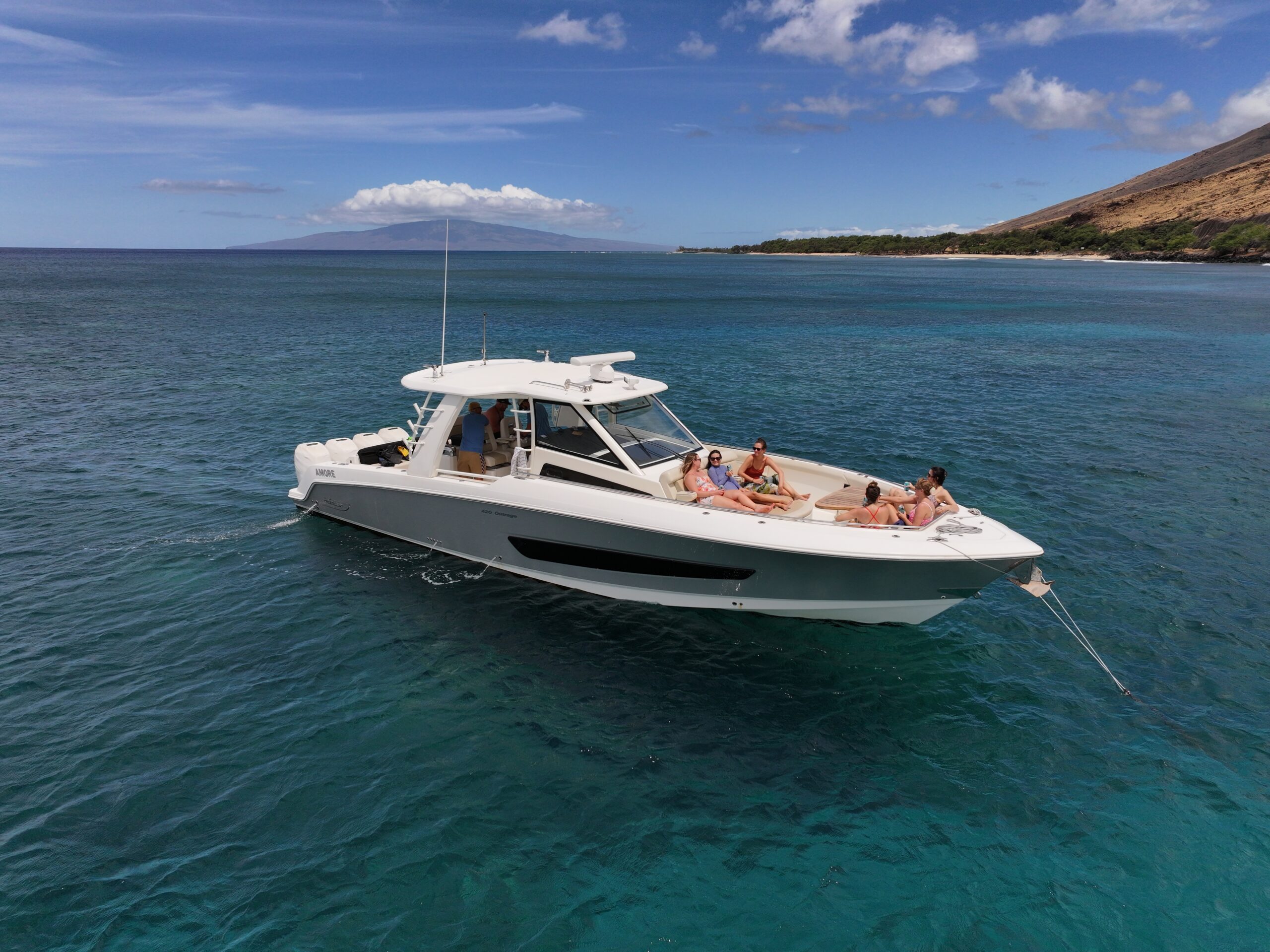 Experience “Amore” a 42-foot Boston Whaler with unmatched state-of-the-art features make the flagship 420 Outrage a boat like no other. Snorkel Maui’s clear waters in comfort while you explore vibrant reefs, spot marine life, and relax on a smooth, stabilized cruise from Maui’s Ma‘alaea Harbor.