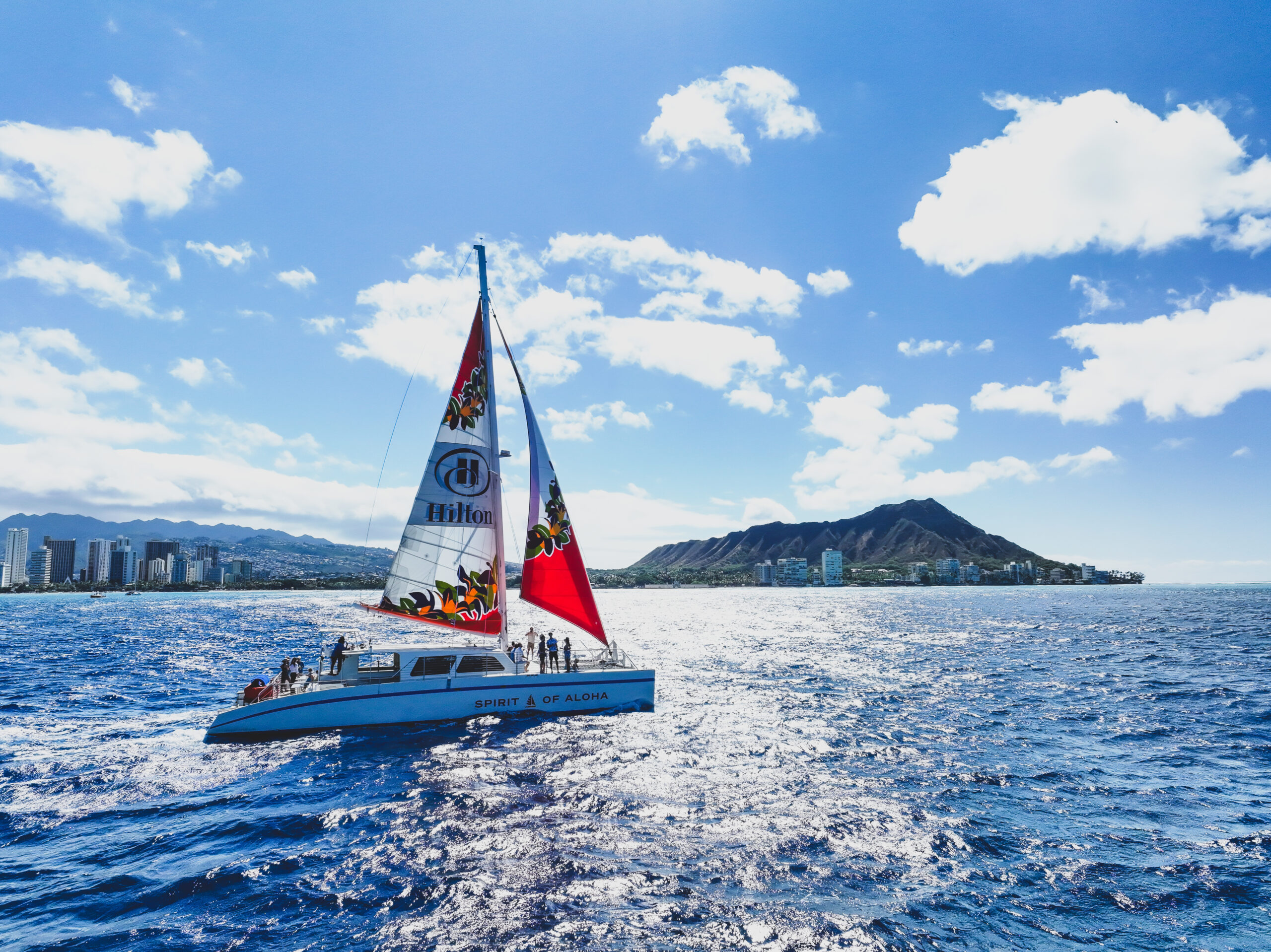 The Spirit of Aloha 1 is Hawaii Nautical’s signature sailing catamaran — a spacious 54-foot vessel designed for smooth sailing, comfort, and fun on the water. With shaded seating, open-air decks, restrooms, and a freshwater shower, this modern catamaran offers a perfect balance of relaxation and adventure. Guests can enjoy snorkeling, sunset sails, and whale-watching (in season) while taking in panoramic views.