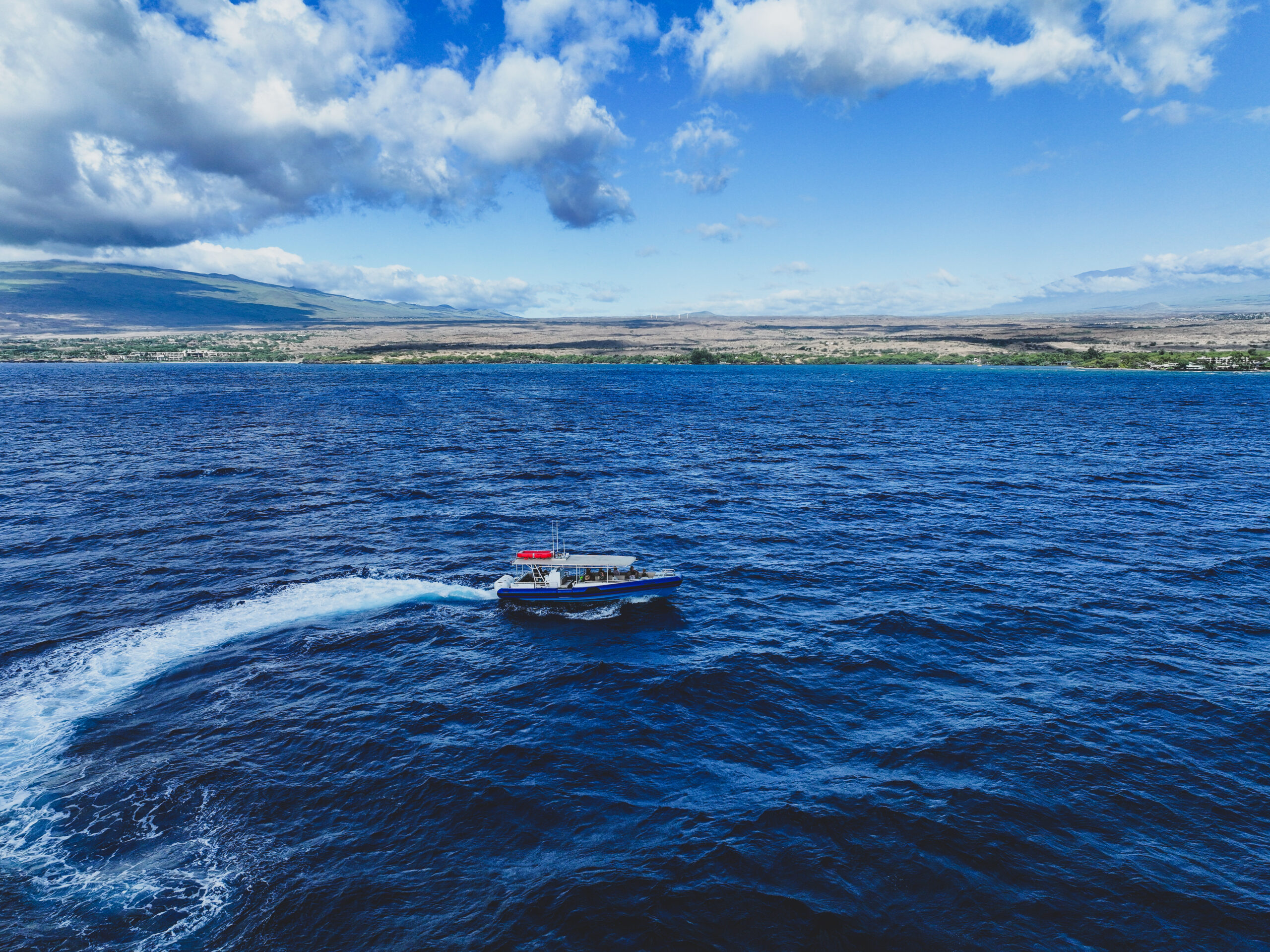 Get ready for an unforgettable ocean adventure as we set off from Kawaihae Harbor on our custom-built 41′ RHIB (Rigid Hull Inflatable Boat) Olohana — designed for comfort, speed, and an up-close experience with the stunning Hawaiian coastline!