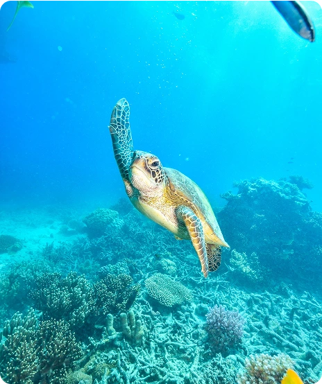 Hawaiian green sea turtles (honu) are frequently seen at our snorkel sites, along with colorful tropical fish and vibrant coral reefs.